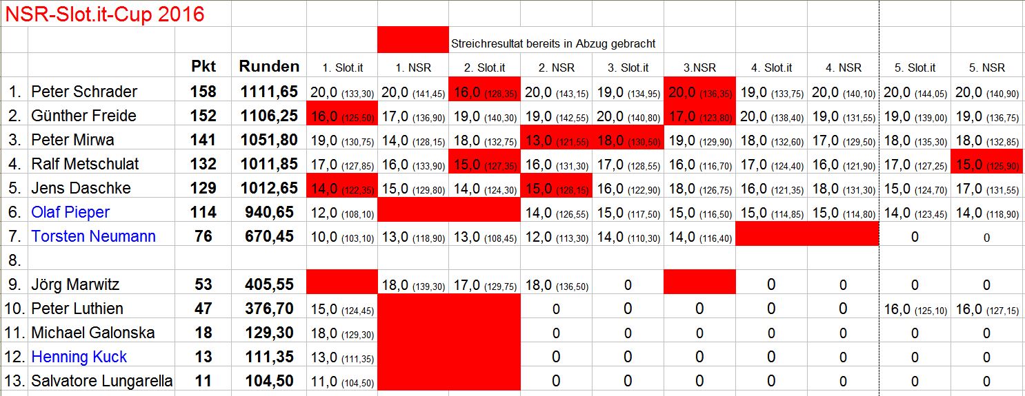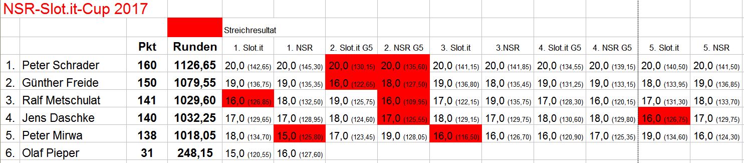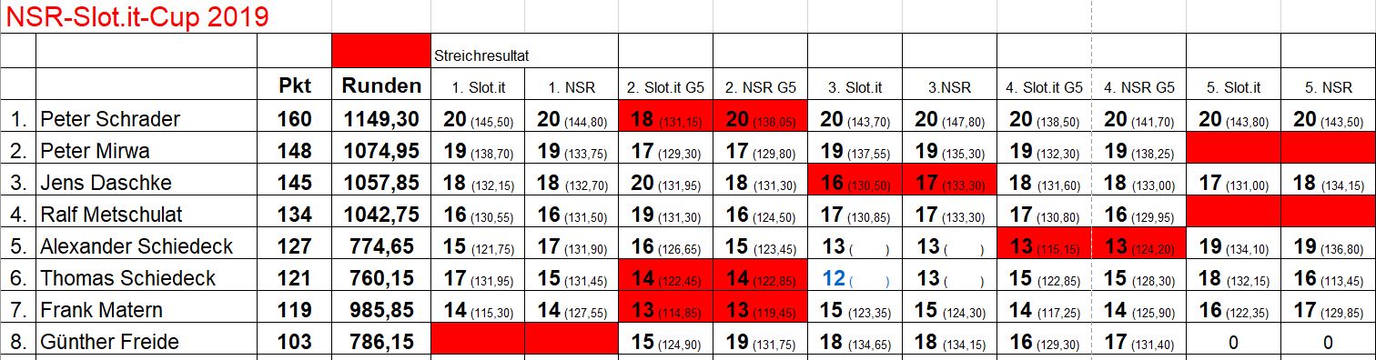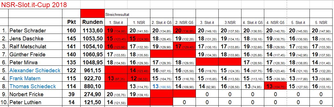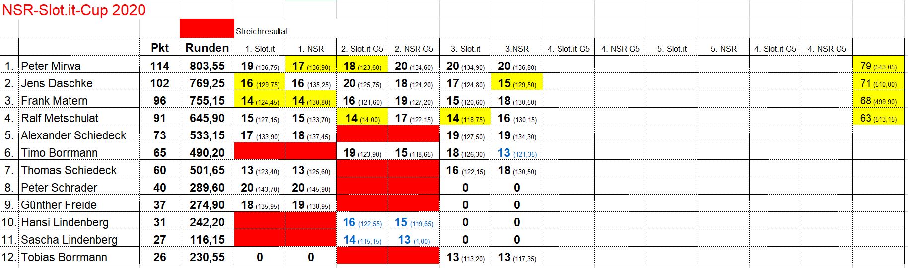 jeweils 6 Rennen an den nur NSR oder Slot.it Fahrzeuge starten
