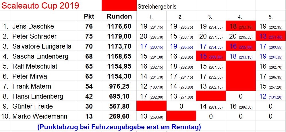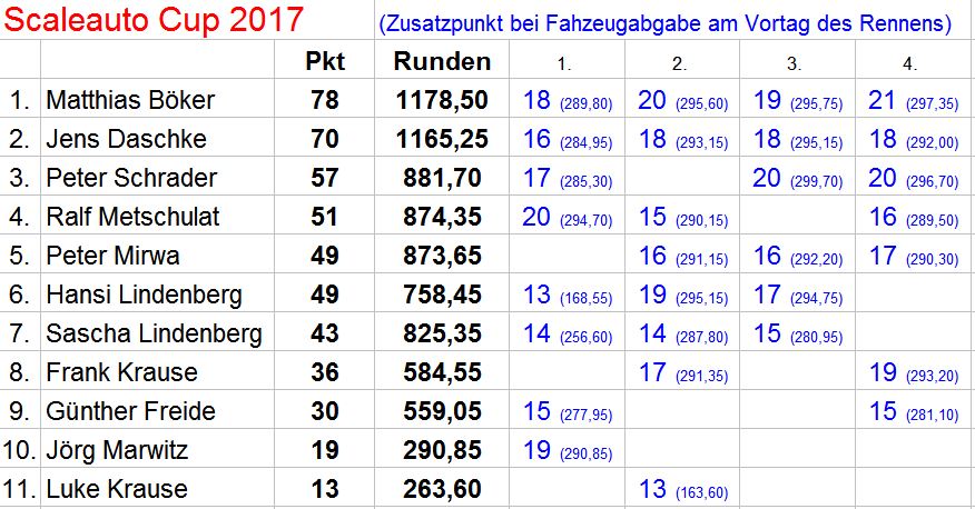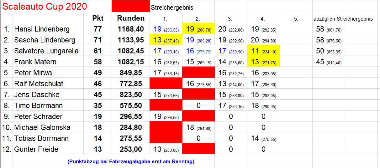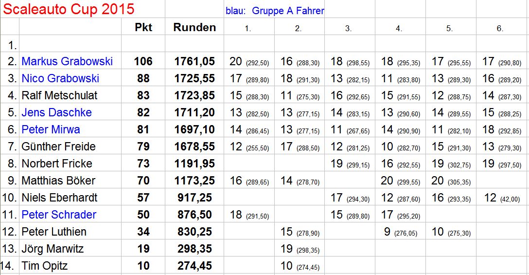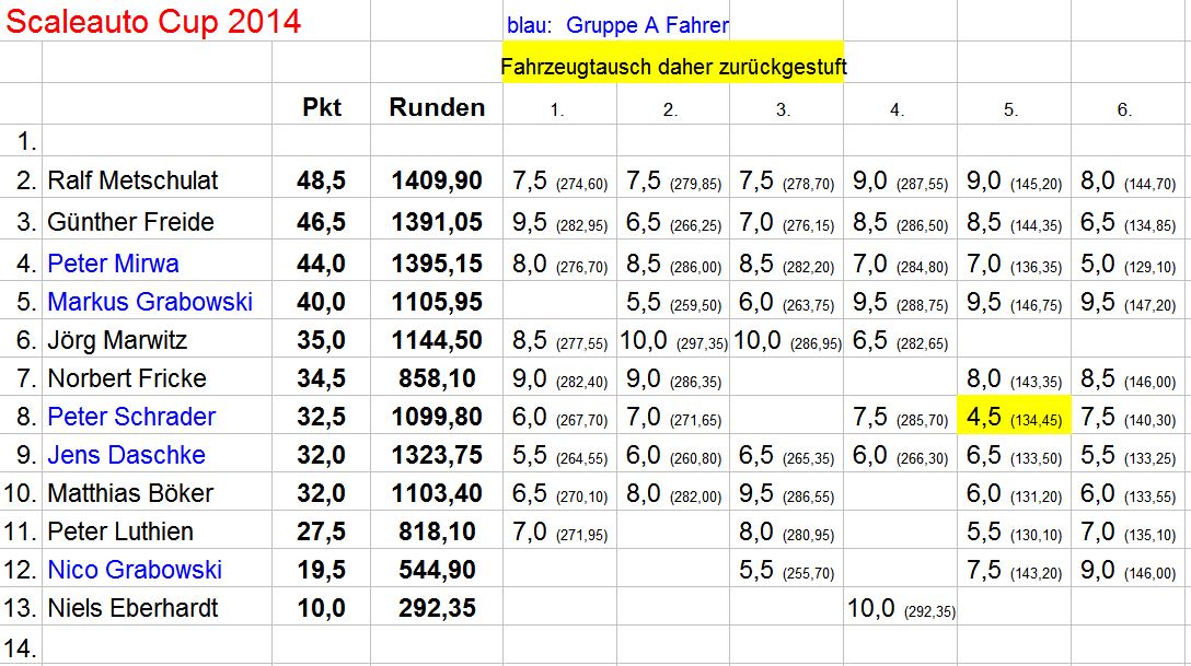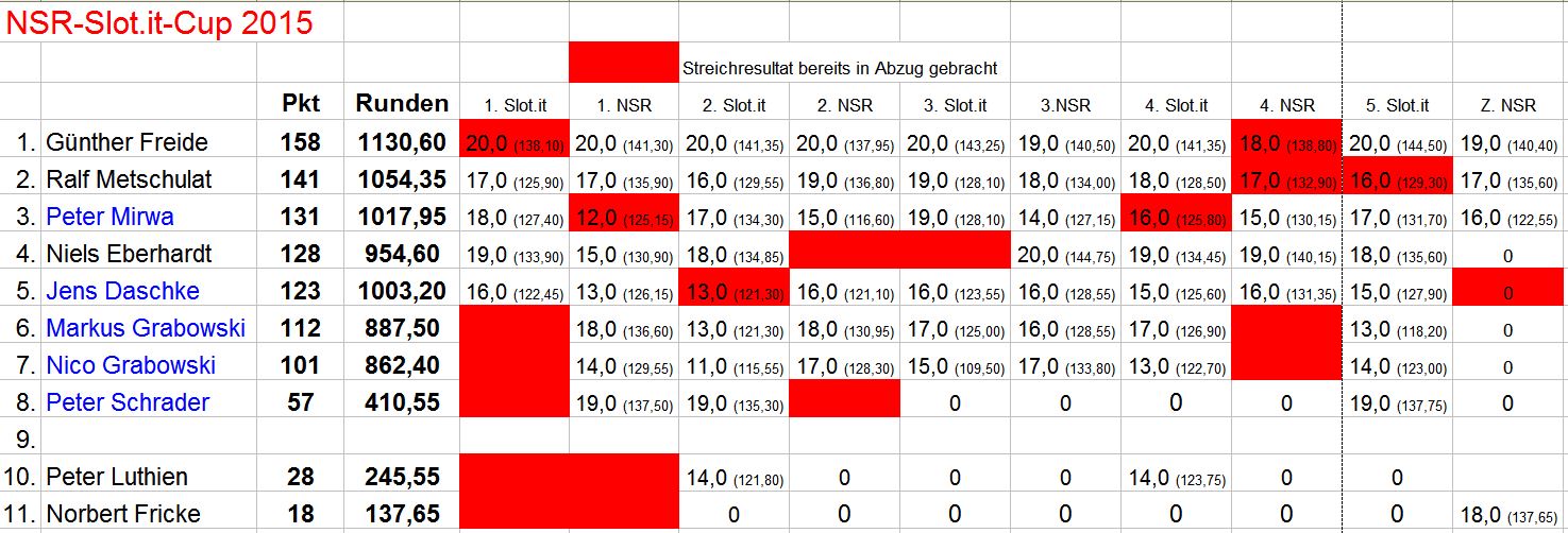 jeweils 6 Rennen an den nur NSR oder Slot.it Fahrzeuge starten